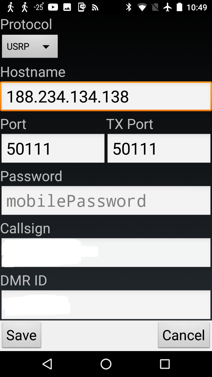 Вводим значения Hostname, Port, TX Port, Callsing и DMR ID. Параметры серверров будут указаны ниже.